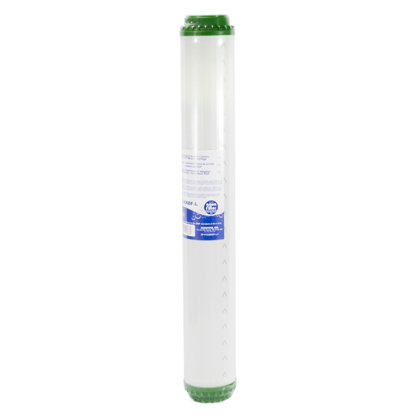 FCCBKDF-L можна використовувати як для очищення побутової, так і питної води. Цей картридж підходить під колбу типу Slim 20" (20х2,5").