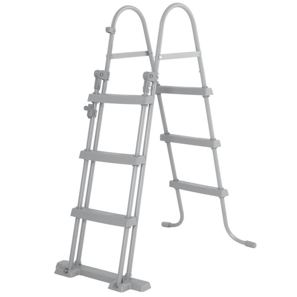 Сходи Bestway Flowclear - це незамінне доповнення до вашого наземного басейну. Сходи виготовлені з міцної сталевої конструкції з антикорозійним покриттям, що робить вхід і вихід з басейну не тільки безпечним, але й зручним. Сходи стійкі до корозії та атмосферних впливів. Складна конструкція полегшує транспортування. Підходить для всіх наземних басейнів заввишки до 107 см.